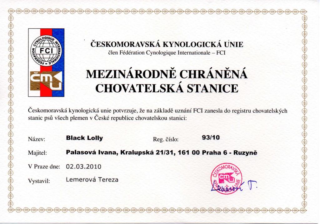 Reg. číslo CHS: 93/10 Certifikát CHS:Zobrazit Certifikát ::: Plánujeme vrh: 01.07.2013 Hodnocení: 100 bodů ze 100